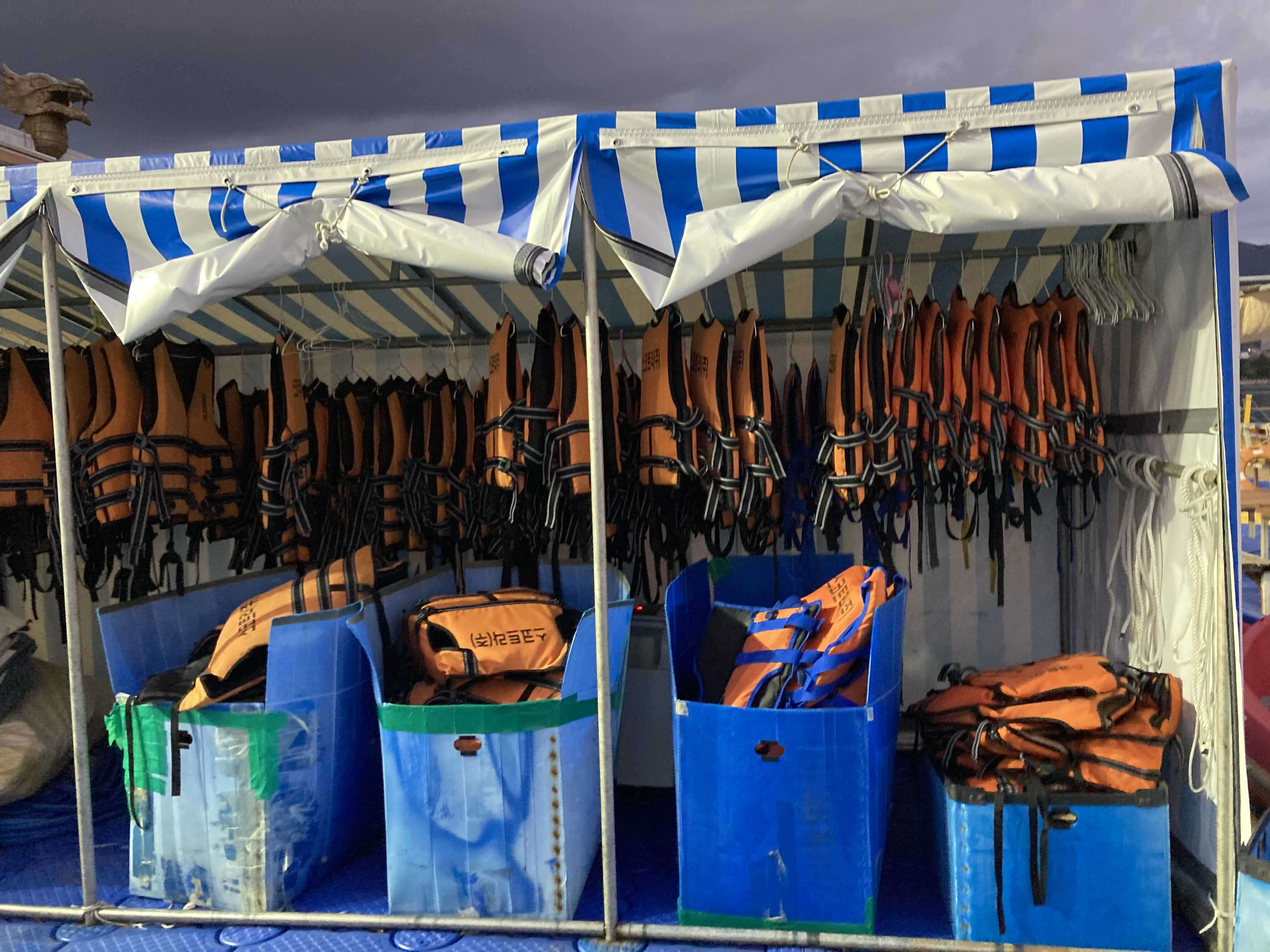 카타마란 티켓을 끊은 뒤 구명조끼도 챙겨입고 탑승:::