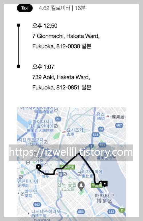 후쿠오카 공항에서 시내(?)라고 표현해야할 지 모르겠지만 필수코스로 다녀가시는 '캐널시티'까지는 거리가 대략 4.6킬로미터 가량 되는데요. 캐널시티(바로 옆 신사) ~ 후쿠오카 공항까지 이용한 택시요금 청구서 🚖사진 아래 첨부해봅니다.