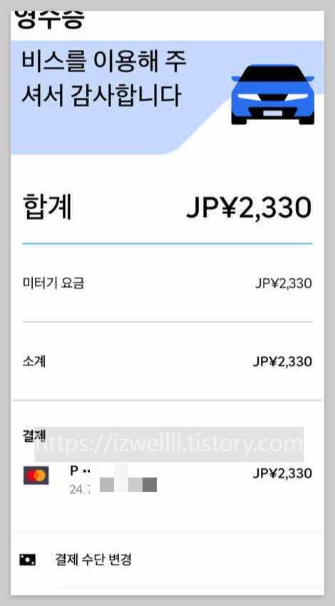 역시 비슷하게 4.4km 가량을 이동하고 결제한 명세서 아래 사진으로 첨부합니다.
