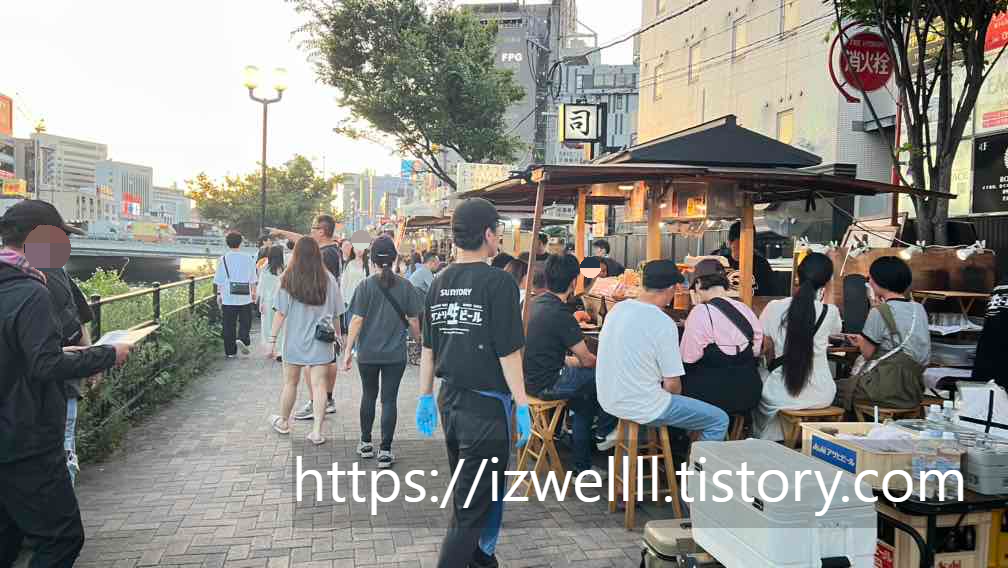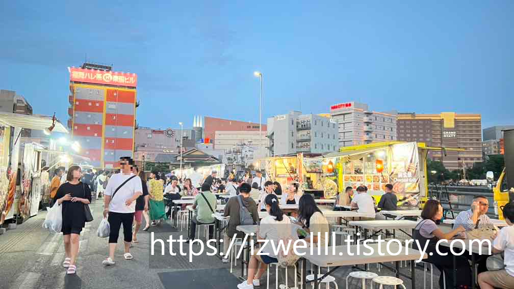 저는 해가 지기도 전인 야타이 및 푸드트럭이 오픈하는 시간대에 가서 조금 널널한 상태로 푸드트럭 존에서 타코야키와 맥주 한잔 했는데요. 조금 있다 보니 사람들이 점점 많이 몰려들기 시작했고 포장마차는 줄을 서는 매장도 많이 보였습니다. \