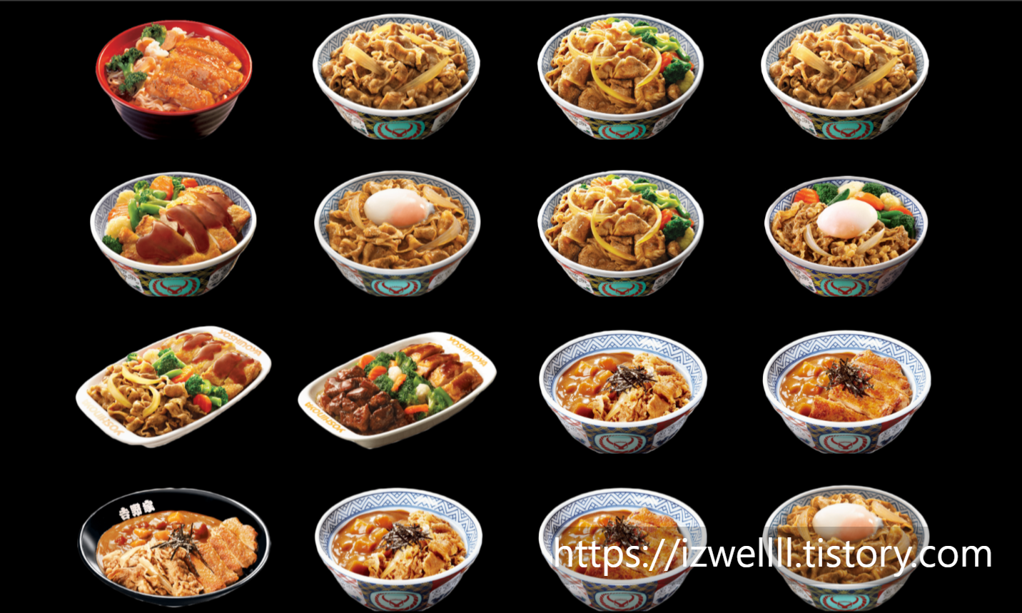 저는 규동을 아주 좋아해서 기본 규동만 거의 계속 먹어대지만 요시노야에서는 아주 다양한 메뉴를 판매하고 있는데요. 매장도 전 세계적으로 약 2000여 개를 보유하고 있습니다. 홍콩에서 특히 그 인기가 대단한데 요시노야 좋아하는 저는 홍콩여행 갈 때마다 요시노야를 꼭 한번씩은 들렀고 심지어 파리에서도 요시노야를 발견하곤 먹었습니다.
