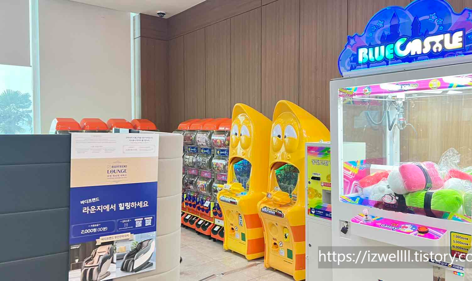 리조트 내 오락실이 따로 있는 건 아니고 편의점 옆에 구석구석 게임기 및 뽑기 기계를 설치해 두었네요!